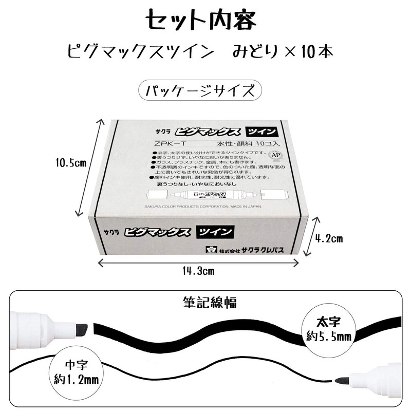 サクラクレパス 水性ペン ピグマックスツイン ZPK-T10P#29 緑 10本