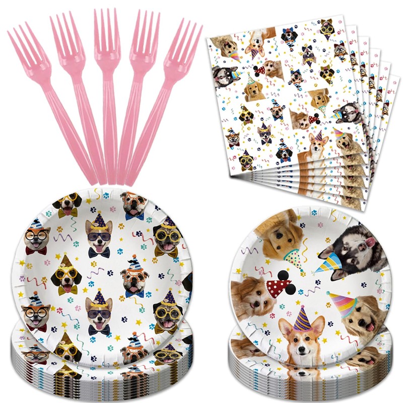 - 【Perfectly Creative】:Except for the fork, this Dog theme party tableware set is all designed in vibrant cartoon Dog patterns. They can fit well with your other Dog party decorations such as Dog party tablecloth, Dog party banner, Dog party bags, Dog party backdrops.