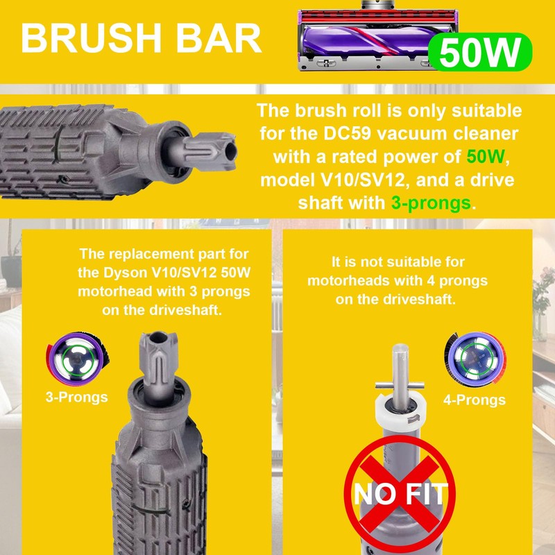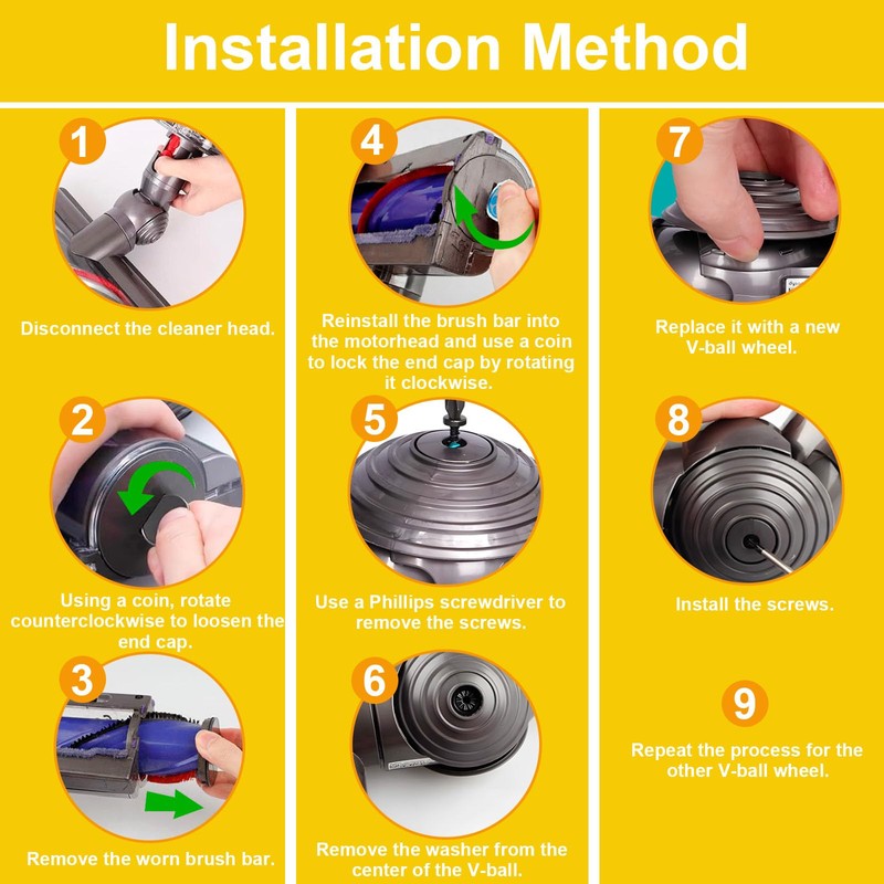 • [Compatibility]---This ball wheel and roller brush bar kit is a replacement for Dyson V8 and V10 vacuum cleaners with 50W quick - release direct - drive motor heads. The replacement parts are for those with 3 - hongs on the driveshaft and part numbers 967483 - 04, 967483 - 05