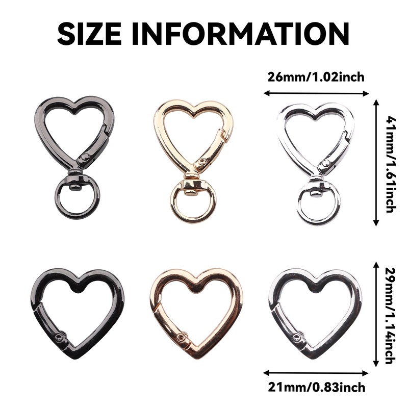 ZROSDSGY 12 Pcs Heart Swivel Spring Clasps,Metal Spring Key Chain Hook Clasps,Clip Hanging Hooks for DIY Crafts Key Chains