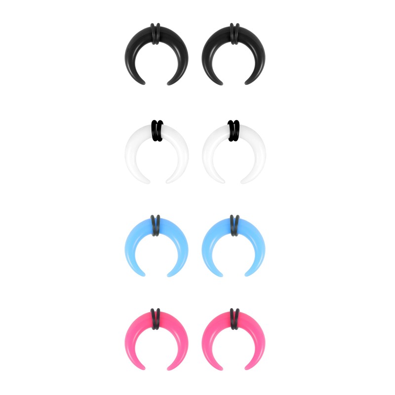 - ❀Septum Pincher Tapers for Women——One order comes with 4 pairs horseshoe piercing tappers. (Pair of blue acrylic pincher tapers, pair of white acrylic horseshoe tapers, pair of black acrylic septum piercing jewelry with double O-rings, pair of pink septum ring.) Economical ear plug tunnel tapers that reasonable price deserves to purchase.