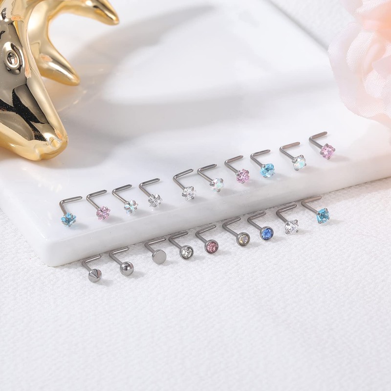 - MULTIPURPOSE L nose piercing jewelry has a simple and stylish design with gorgeous colored cubic zirconia embellishments, is a popular style at the moment. Add more freshness and difference to your daily looks, also for wedding, Valentine's Day and other special parties.