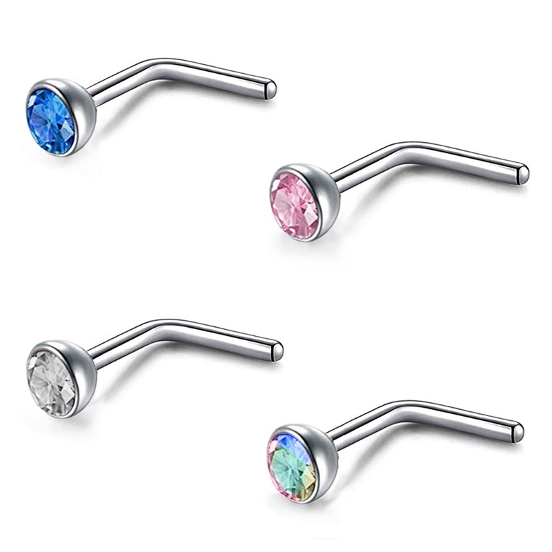 - ❀ Titanium Nose Ring Set - 4 pieces 20 gauge titanium nose studs, L-shaped nose studs have 3 cubic zirconia stones (star/heart/round) to choose from, please choose your style and suitable size.