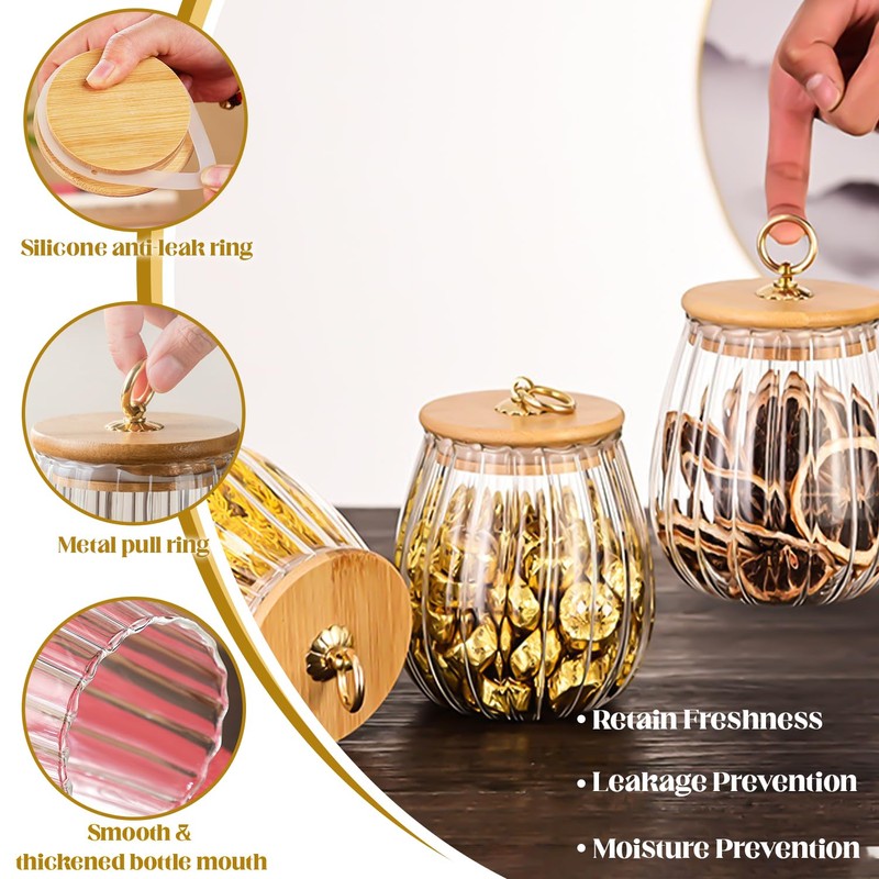 - Distinctive Shape and Design: The petal texture not only offers a non-slip surface for stability but also imparts a stylish floral aesthetic to these decorative candy jars, making glass canister with lid glass jars with wood lids an excellent choice as home decor accessories. Additionally, glass canister keepsake box-like appearance makes these glass candy jars ideal gift options
