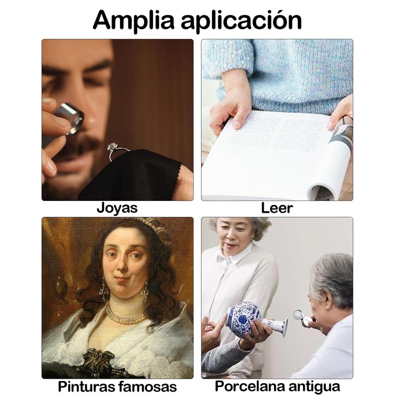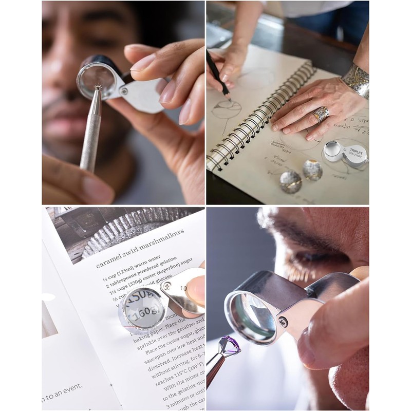 - 【Aplicaciones multifuncionales】: lupa es ideal para uso doméstico, laboral o comercial, incluyendo lectura, filatelia y recogida de monedas y tareas más complejas. Es una excelente herramienta para la industria de la joyería y la relojería, especialmente adecuada para inspeccionar objetos pequeños