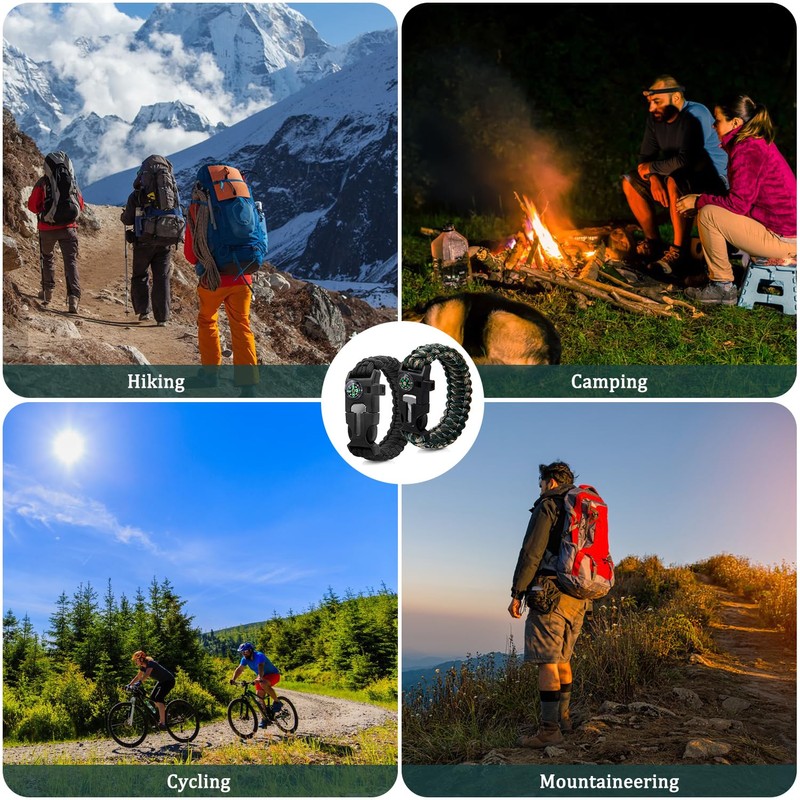 - Multifunctional bracelet: the survival bracelet with whistle, flint and compass is an ideal, indispensable tool for outdoor travel and adventure.