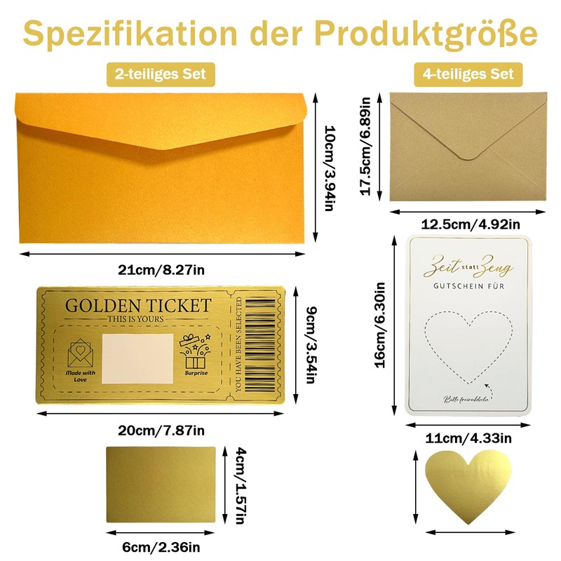 - EXCELLENT PACKAGING: The whole set of wunschgutschein envelopes is beautifully packaged with a premium appearance, and the text and pattern on the gold gift cards are gravure printing, which visually conveys a sense of hierarchy and three-dimensionality, making them ideal for use as gifts. Whether for friends or family, let the recipient feel the intention and surprise of the giver.