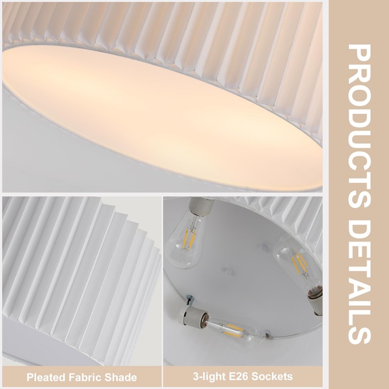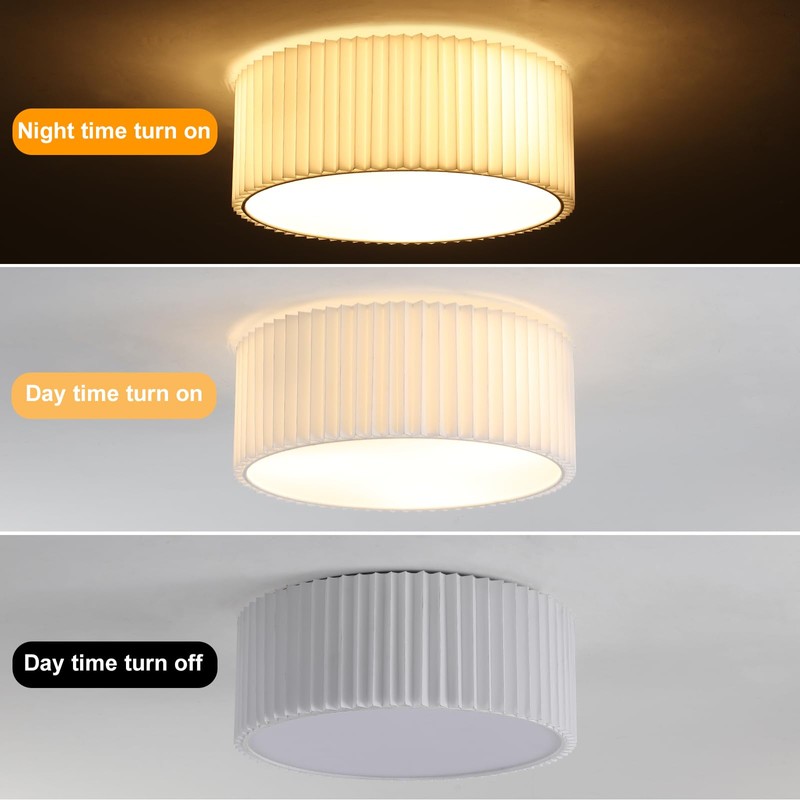 - 【Unique Design】 flush mount ceiling light features a modern double-layered design, pleated beige white fabric drum shade create a sophisticated yet warm atmosphere. Each pleat is meticulously designed and combination with an acrylic diffuser panel, ensures an even light distribution.
