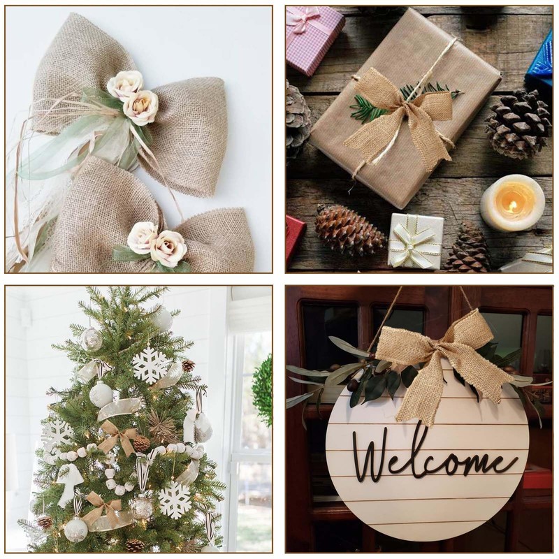ZSRVAJ 3 Pcs Hessian Ribbon, Natural Burlap Jute Ribbon, Yellow, Rustic Tartan Gingham Pattern, Christmas & Wedding Occasion, 3 Items