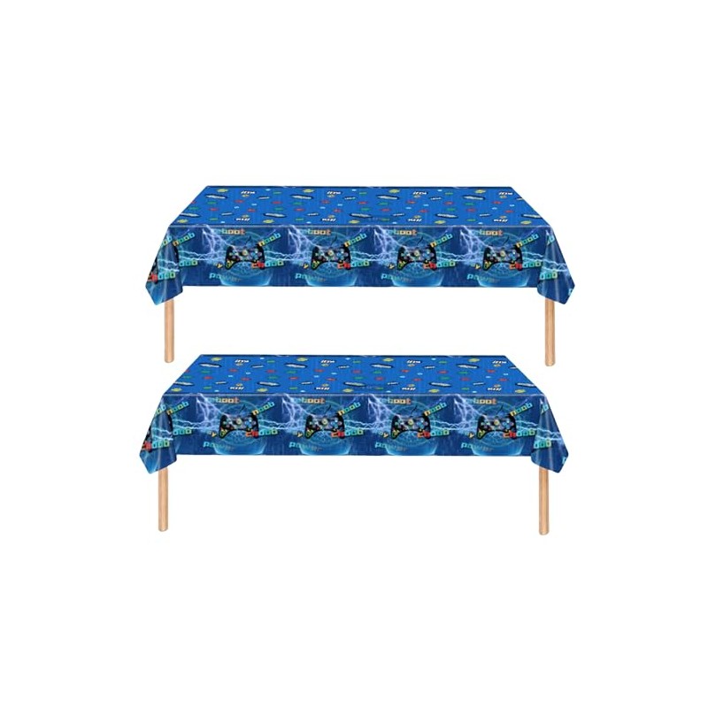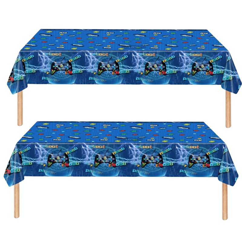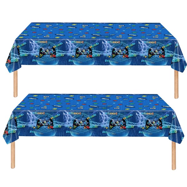 ZSYIULIA 2Pcs Game Party Disposable table cloth for Boys Birthday, Blue Game Cartoon Party Decorations Table Cloth for Game Controller Theme Table Party Favor