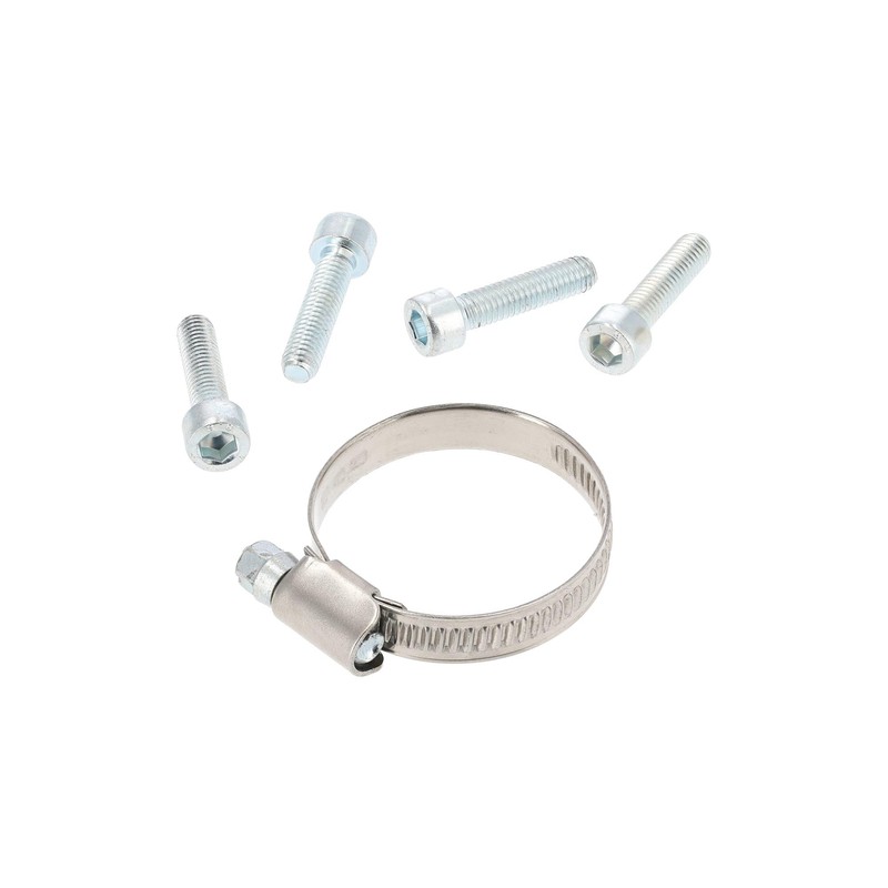- Box contents as shown including hose clamp and 4 screws with washers