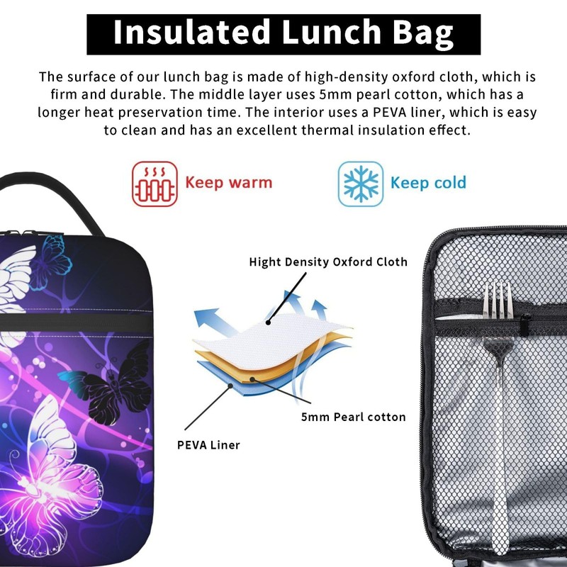 ZTDYTUDW Purple Butterfly Insulated Lunch Bag—portable Lunch Box For Women/Men/Girls/Boys Detachable Handle Lunchbag Meal Tote Bag