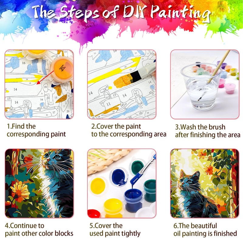 - Paint by Numbers Kits for Adults: DIY garden cat paint by numbers canvas can experience a sense of accomplishment, learn to relieve stress, regulate emotions, enhance self-confidence and perseverance, and cultivate patience. It is suitable for both the elderly and children