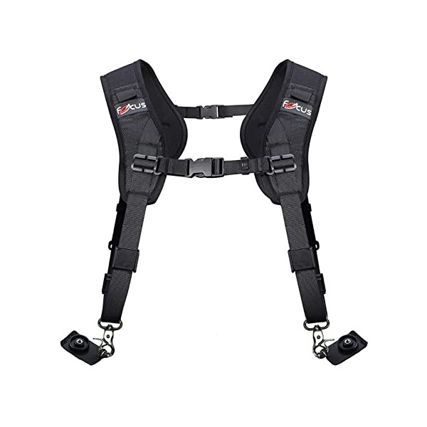 Ztowoto Double Shoulder Camera Strap Harness Quick Release Adjustable Dual Camera Tether Strap for DSLR SLR Camera (focus)