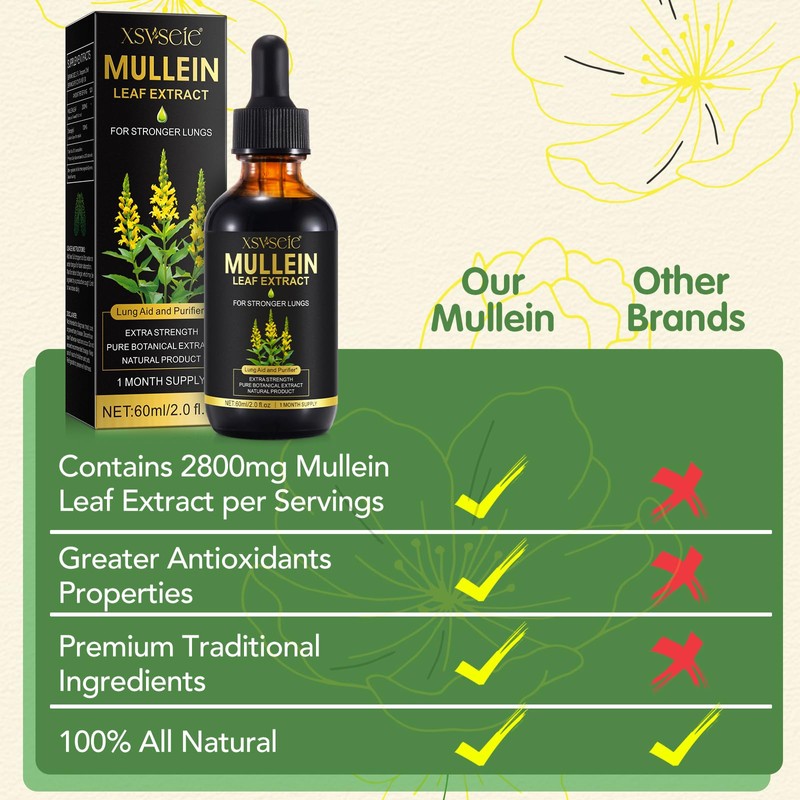 - MULLEIN LEAF EXTRACT FOR LUNGS: A must-have for improving your respiratory system and effectively cleansing the airways. Ideal for smokers and people who are conscious of their lung health.