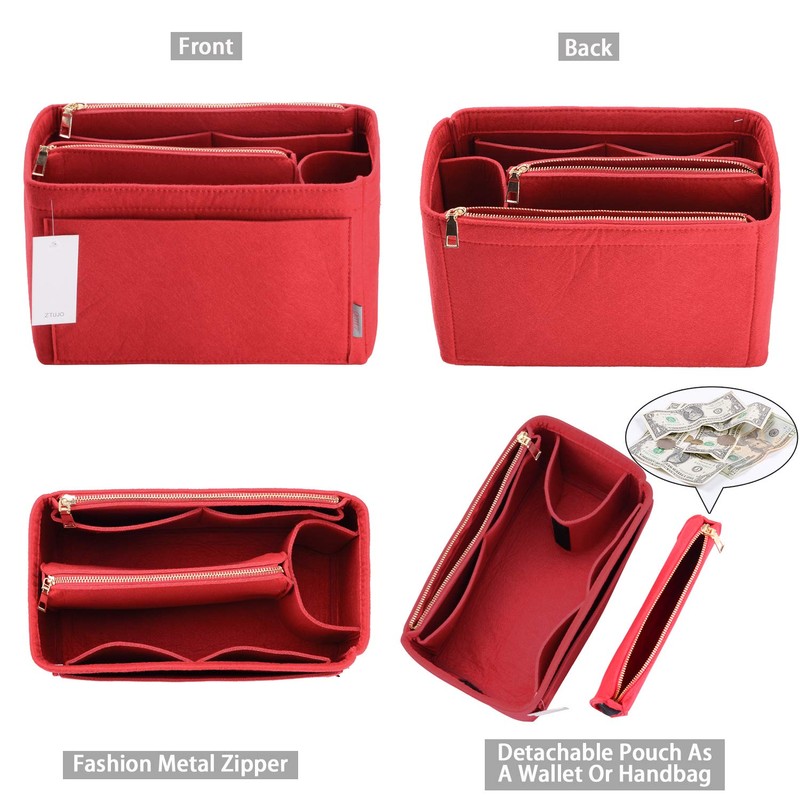 ZTUJO Purse Organizer, Felt Bag Organizer Purse Organizer Insert For Speedy, Neverfull, Graceful, Neverfull,Tote, Handbag,Shaper, Red, Medium