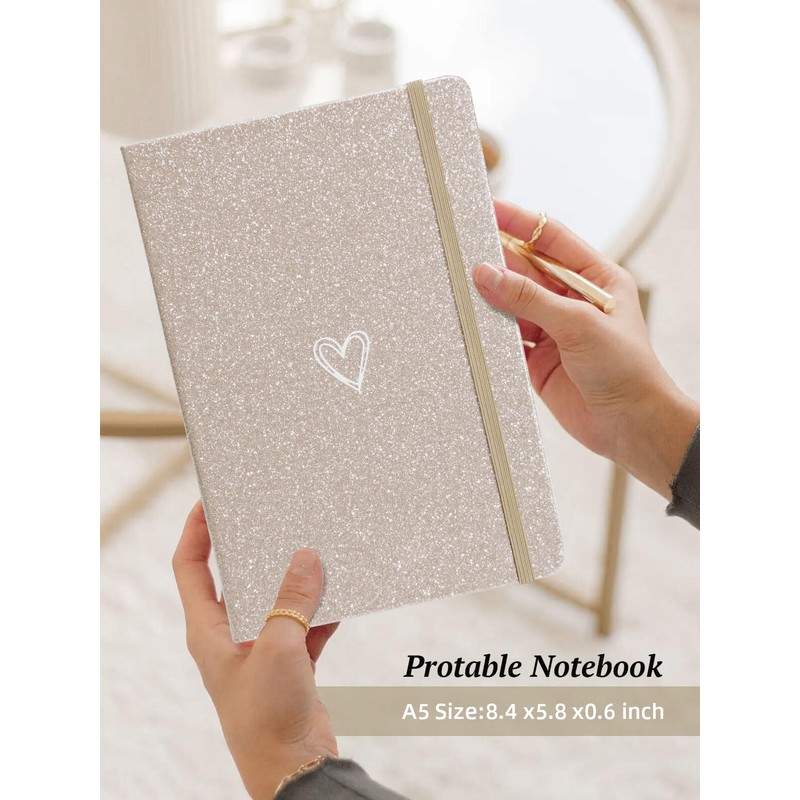 - Bling Hardcover Journal Notebook:This A5 ruled journal notebook features a hardcover leather cover,Leather feels soft and comfortable,inner ribbon bookmark and elastic closure band,for all your writing,note-taking, traveling, etc. At the same time,Sized at 5.8"x8.4", this medium A5 notebook is easy to carry for convinient writing