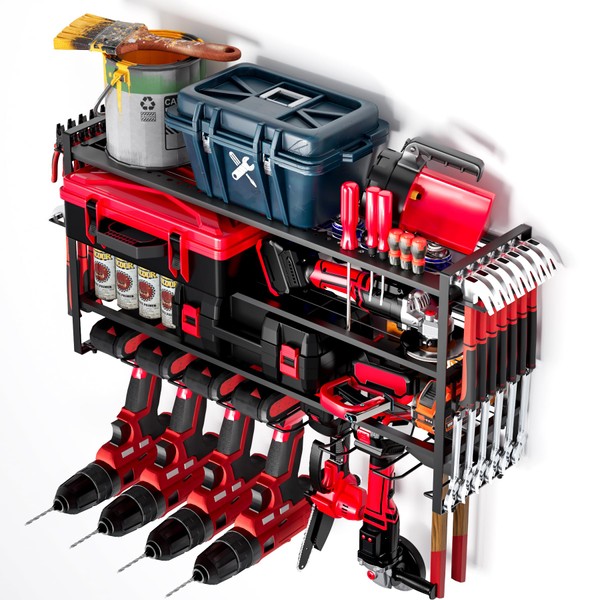 - 200-LB Heavy-Duty Strength: Reinforced steel and industrial-grade brackets safely hold bulky toolboxes, automotive parts, or gardening equipment.Confidently load without bending.Never worry about the shelf breaking or the tool rack falling from the wall up and down