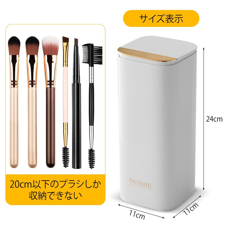 - Compact Design: Small makeup brush holder 4.3 x 4.3 x 9.4 inches (11 x 11 x 24 cm). Optimized for items less than 7.9 inches (20 cm) and can be stored in a corner of your vanity or in the gap of your carry bag. Combines functionality and space saving as a makeup brush case