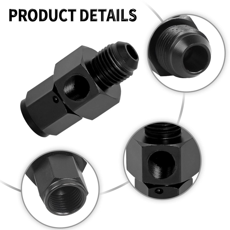 • Material: The automotive retrofit oil cooling hose adapter is made of quality-made metal with a black anodized finish, ensuring durability, corrosion resistance, and long-lasting performance