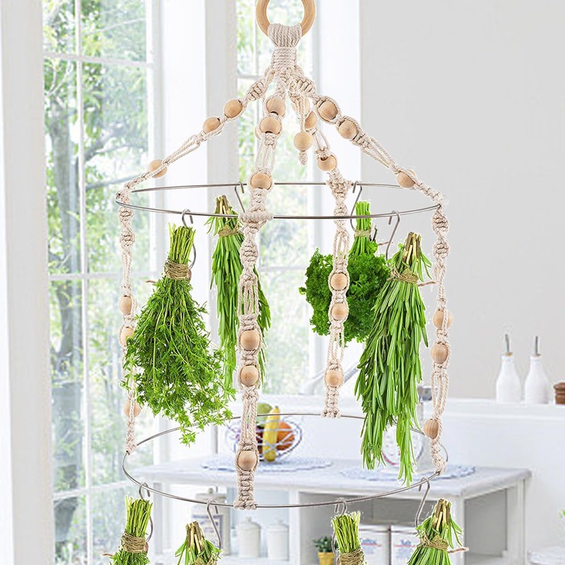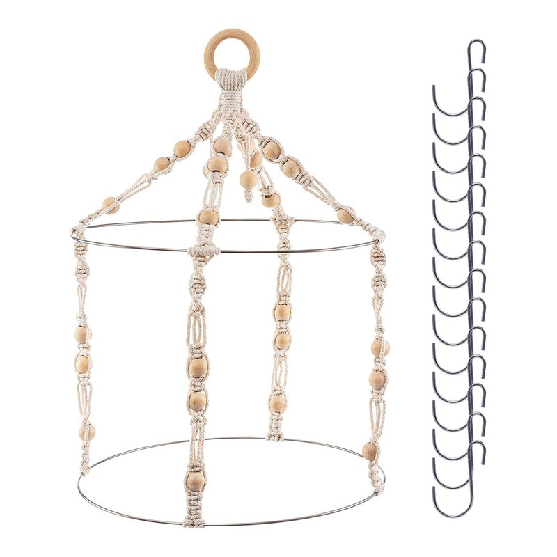 - 【Double Tier Drying】:This hanging dryer is designed with two tiers, the top is made of solid wood, enough strength to weigh you, the twine and wooden beads on the four sides are hand-woven and combined, so that your dryer is not easy to deform and loosen. The combination of hemp rope and physical design reflects a bohemian style for you, simple but not lost art.