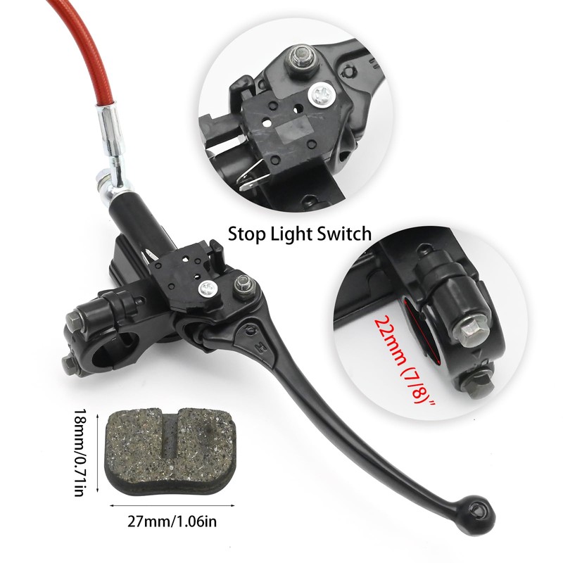 - Moderate Size: Designed for use on the left side of 7/8" handlebars, the brake hose measures 50 inches in length. The brake caliper features 2-inch center-to-center mount holes, suitable for most mini bikes' handlebars and mounting requirements