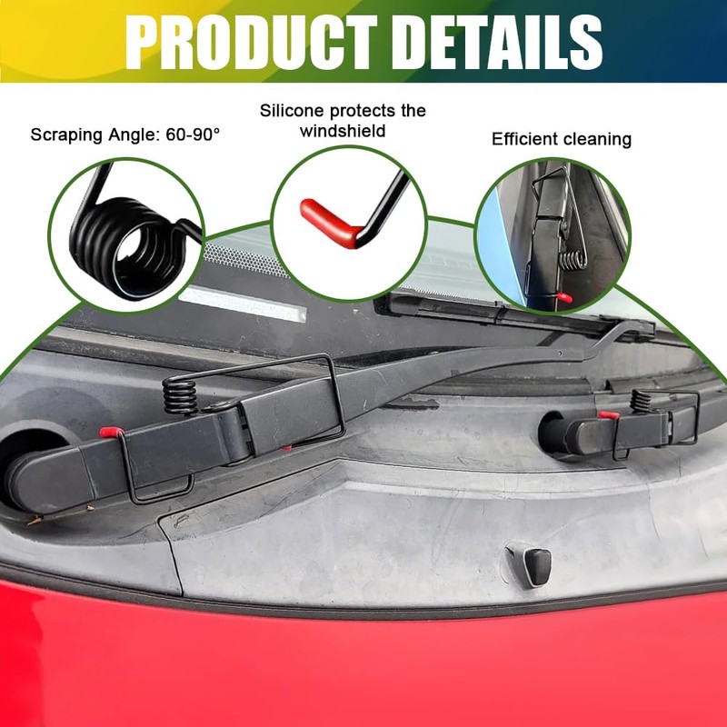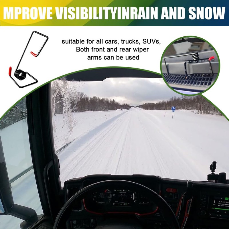 - [Easy to install]: The windshield wiper booster with pressure spring is very easy to install, no additional tools are required, just lift the wiper arm, put one end of our windshield wiper arm spring in, and ensure that the two ends of the spring are fixed to the wiper arm.