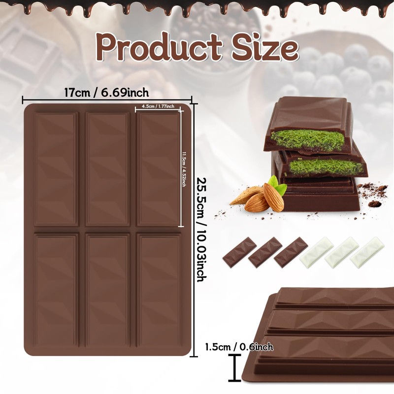 - 【Easy To Make And Multipurpose】 If you want to try to make homemade knafeh pistachio chocolate bar, candy bars and wax melts, , then these pistachio chocolate bar molds allows you to make professional-looking chocolate bars at home easily, very easy to operate and produce visible results, both beginners and baking enthusiasts can use it easily.