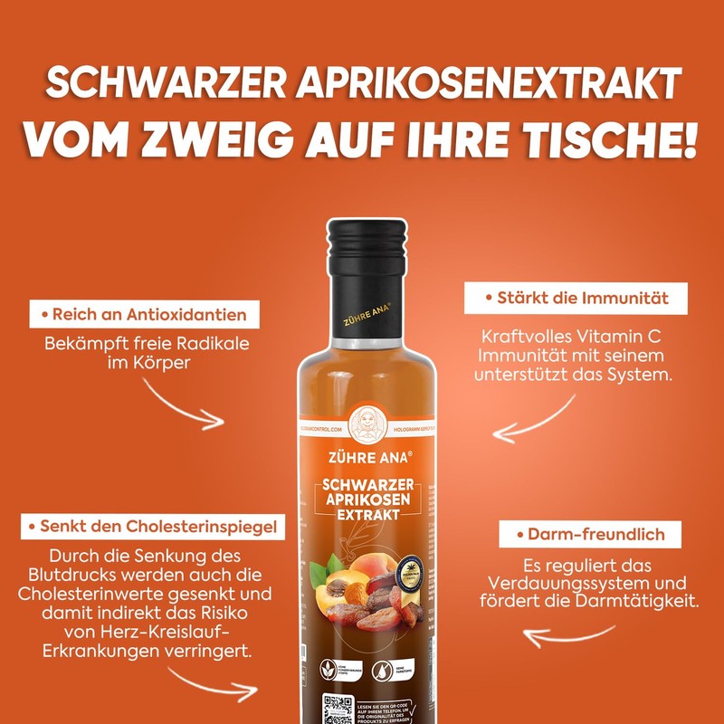 - ✅ Reich an Antioxidantien & Nährstoffen:Der Schwarze Aprikosenextrakt ist eine natürliche Quelle von Beta-Carotin sowie Vitamin A, C und E.