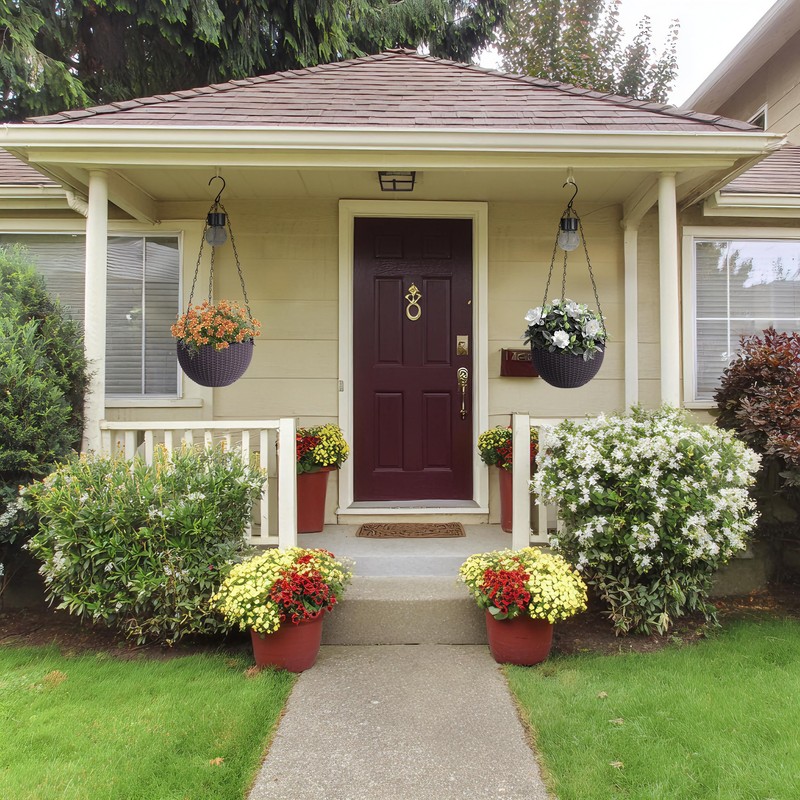 - The fake hanging flower basket looks real and stylish, making it the perfect hanging basket for your front door yard balcony wall.It blooms all year and adds a sense of spring to your home.