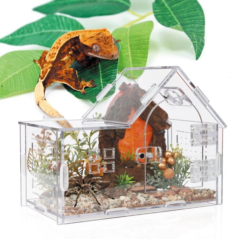 - Versatile and stylish jumping spider enclosure, a mini terrarium that doubles as a charming little house for your live animals. Crafted from high-quality acrylic, this glass terrarium offers all-round transparency, making it perfect for observing your pets in their natural habitat.