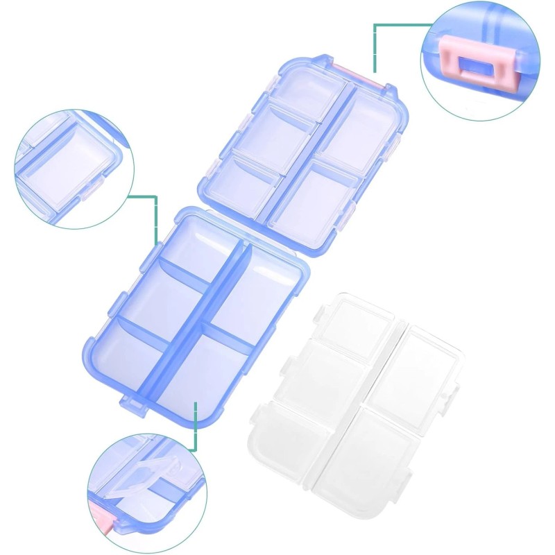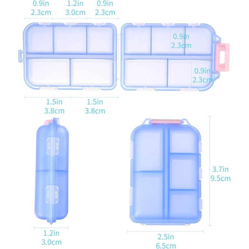 Zuihug Travel Pill Organizer 1 Pack, 10 Compartment Portable Pill Box Case for Purse, B