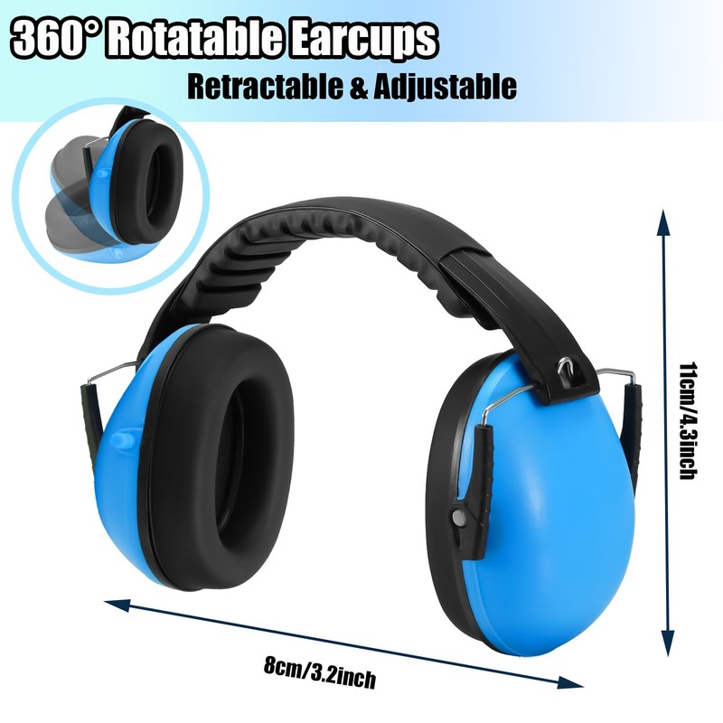 - Foldable and Portable: Thanks to the 360° rotating cup, the whole body of kids baby ear defenders can be folded into a very compact size, lightweight and portable anywhere, it can make you enjoy the quietness in the noisy environment.