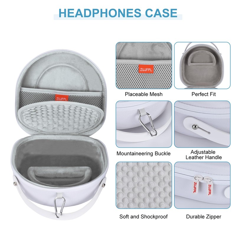 - Adequate Accessory Space: The independent grid space on the lid is suitable for other headphone accessories, such as cables and chargers. The design of the middle partition can prevent items in the grid from scratching your headphones, and the design of the outer shell protects your headphones from the outside to the inside.