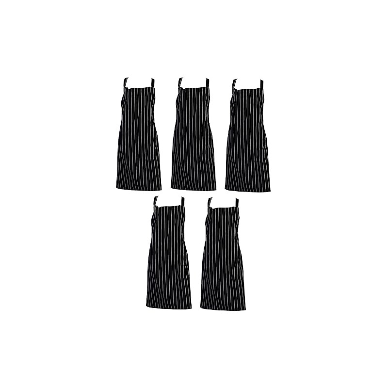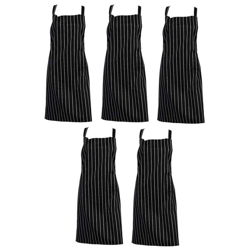 Zukeo Chef Pack of 5 Professional Woven Stripe Cotton Butchers Kitchen Apron - No Pocket (Black)