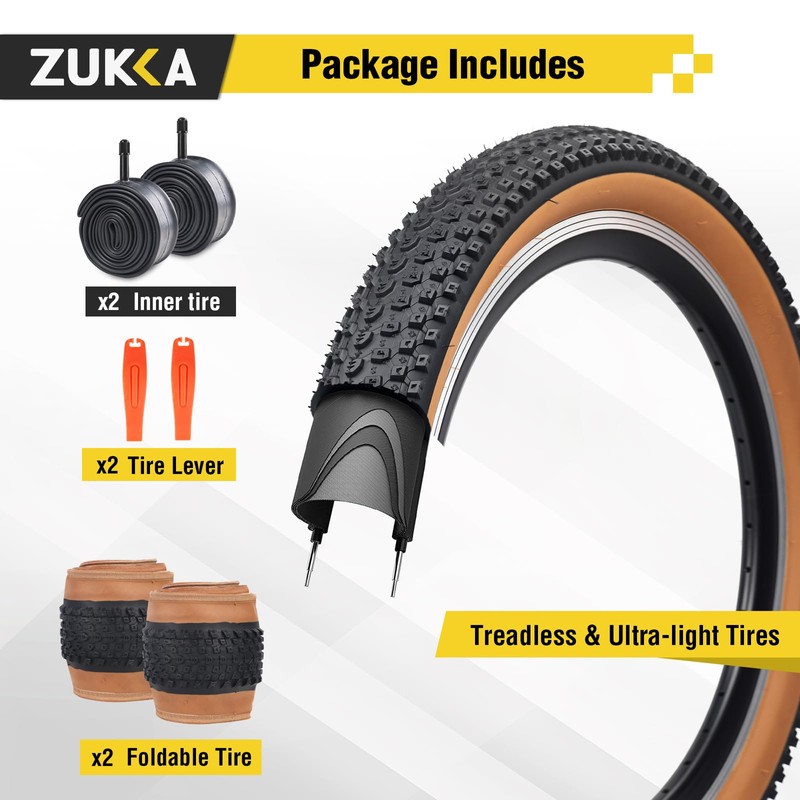 ZUKKA Bike Tire 20 x 2.125 Bike Tire 2 Pack Mountain Bike Tire Folding Replacement Tire for MTB Mountain Bike, Kids (Brown, 24 x 2.125/2 Tires+2 Tubes+2 Levers)