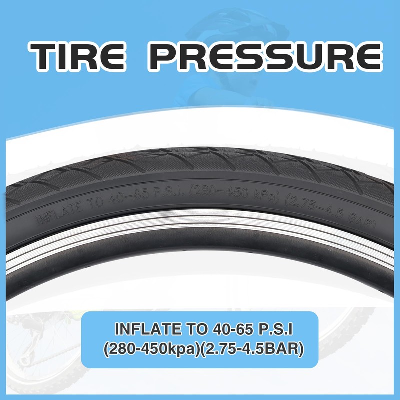 - Bike Tire Size: 24x1.75 inch (47-507mm); Inflate to 40-65 P.S.I.(280-460kPa)(2.75-4.5Bar).