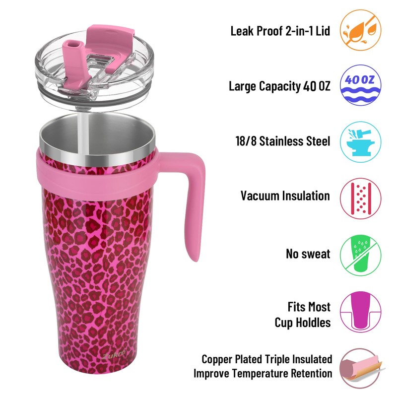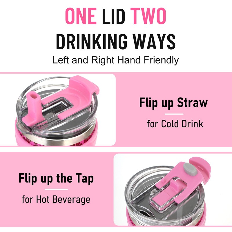- 2-IN-1 PRESS-IN LID SIP & STRAW DRINKING WAYS - Zukro 50oz tumbler with handle comes with unique 2-in-1 lid allows you to sip your hot or cold drinks with the flip up Sip lid, and drink your cold drinks with the integrated flip closeable straw, now your two favorite ways of drinking is built into one awesome lid