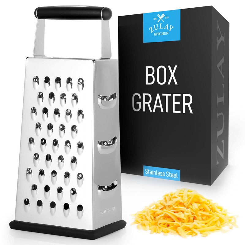 Zulay (ズレイ) (大) 4面チーズグレーター - ステンレススチールグレーター 握りやすいハンドル&滑り止めベース - ワイドグレーティングサーフェスボックスグレーター シャープブレード パルメザンチーズ、ジンジャー、野菜などに