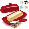 Zulay Butter Dish With Lid For Countertop - Porcelain White, Ceramic Butter Dish with Knob Handle Great for Cooking - Elegant Design Butter Holder - Durable & Sturdy Butter Keeper - Red