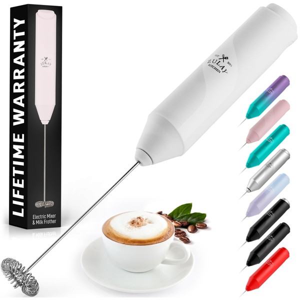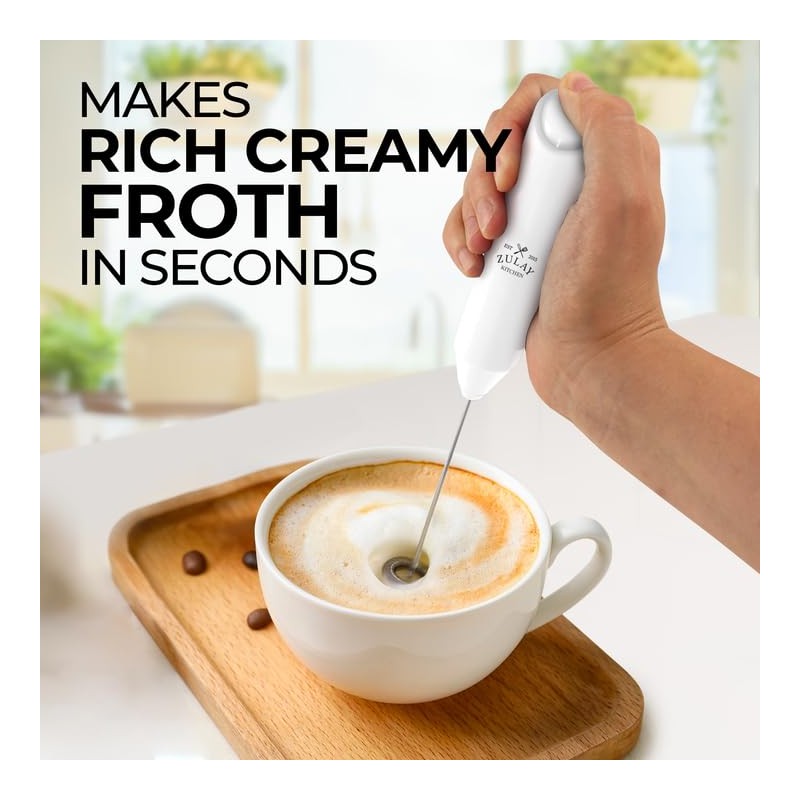 Zulay FrothMate Powerful Milk Frother for Coffee - Portable & Compact Handheld Foam Maker for Lattes, Cappuccinos, Matcha, Hot Chocolate - Milk Foamer Frother - No Stand Electric Whisk (White)