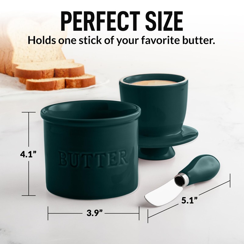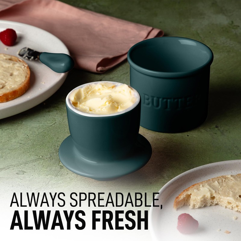 - PERFECTLY SPREADABLE BUTTER: No more waiting for butter to soften! This butter crock keeps your butter at a spreadable temperature, so you can enjoy smooth, easy spreading right when you need it. No one likes wrestling with cold butter on their toast, and this French butter dish ensures a smoother, stress-free breakfast experience.