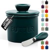 Zulay Kitchen Porcelain Butter Crock With Lid & Knife - Authentic French Butter Dish For Fresh & Spreadable Butter - Forest Green