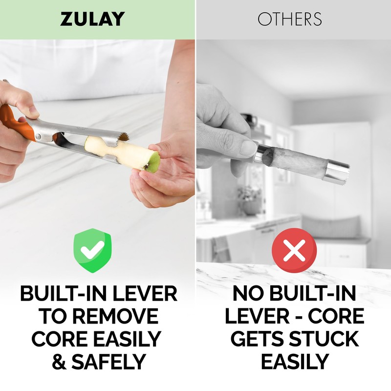 Zulay Kitchen Premium Apple Corer Tool - Ultra Sharp, Stainless Steel, Serrated Blades for Easy Coring - Easy to Use & Clean, Durable Apple Corer Remover for Baking Apples & More - Cinnamon