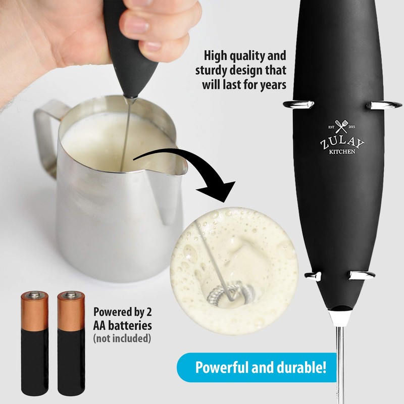 - Proven and Trusted Quality: We use only premium materials. The construction will last, backed by our Zulay Guarantee to not rust or break, ever. Our small and efficient frother works on all types of milk - half and half, creamer, soy, almond, cashew, hazelnut, whole milk, and other dairy such as butter or cream.