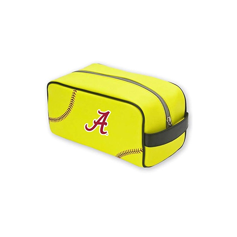 Zumer Sport Alabama Crimson Tide Softball Leather Travel Toiletry Kit Zippered Pouch Bag - made from the same exact materials as a softball - Yellow with genuine Red Stitching