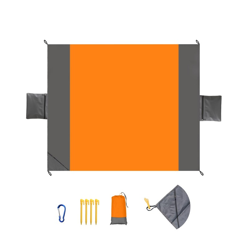 Zumhigh Beach Mat Picnic Blanket Waterproof Extra Large 210 x 200cm Corners Zippered Pocket Picnic Blanket Beach Mat 2 Storage Pouche 4 Fixed Nails for Beach Camping Hiking Lightweight Orange