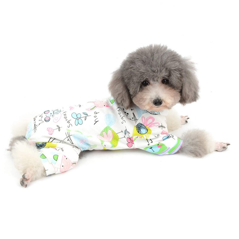 - PLEASE NOTE: This pyjamas runs really very small (SMALLER than standard US/EU size), and just fit for EXTRA SMALL and SMALL size dogs and cats. please measure the chest girth and back length of your pet before ordering, Weight only for reference, thanks.
