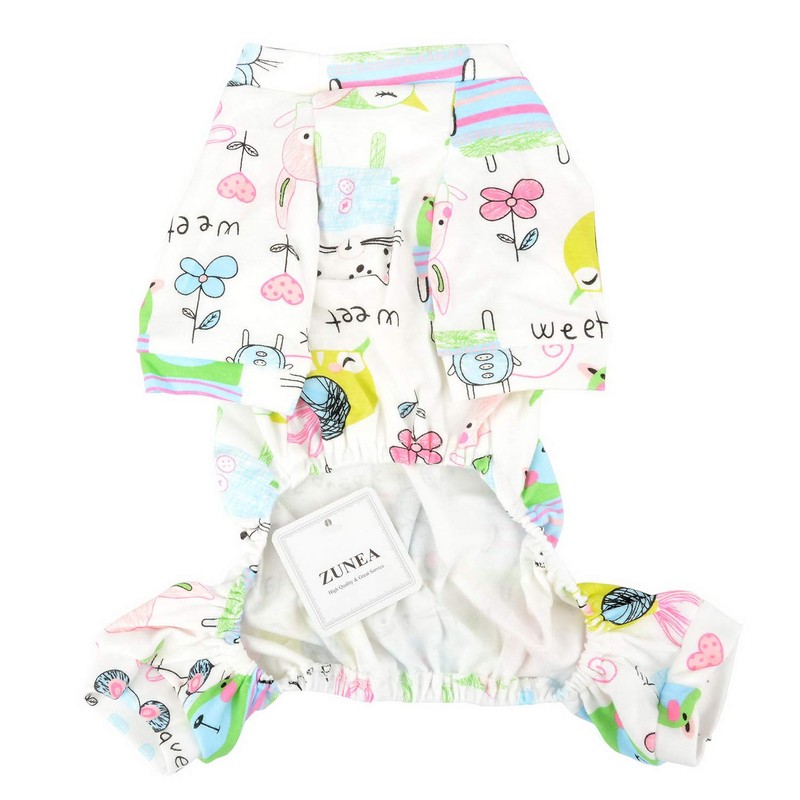 Zunea Small Dog Jumpsuit Adorable Mouse Flower Printed Overalls Soft Cotton Pyjamas Rompers Puppy Sleeping Clothes Four Legs Pjs Apparel for Pet Cats Pups XXL