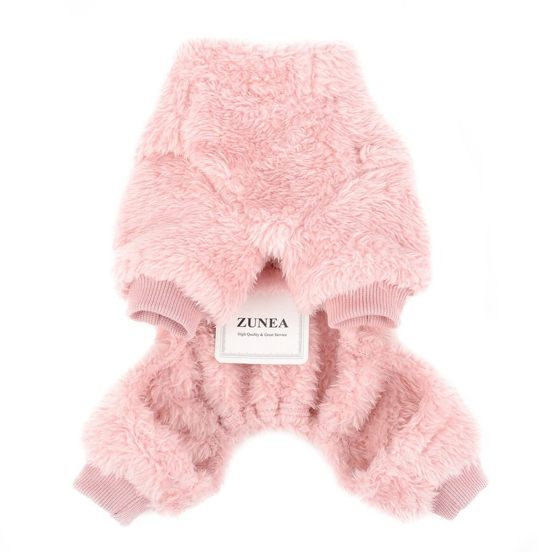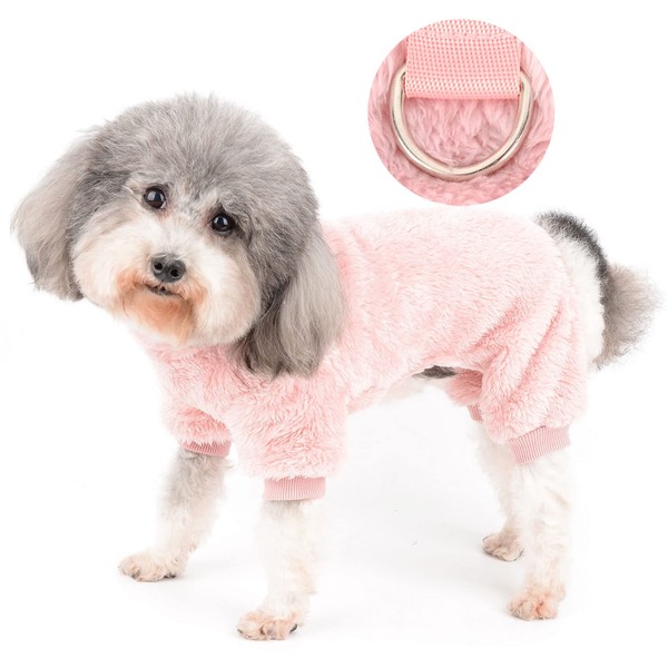 Zunea Winter Dog Pyjamas for Small Dogs Fuzzy Warm Fleece Puppy Clothing Pyjamas Soft Plush Winter Coats Pjs Jumper Jumpsuit with D-Ring Pet Clothing for Chihuahua Yorkie Pink XXL
